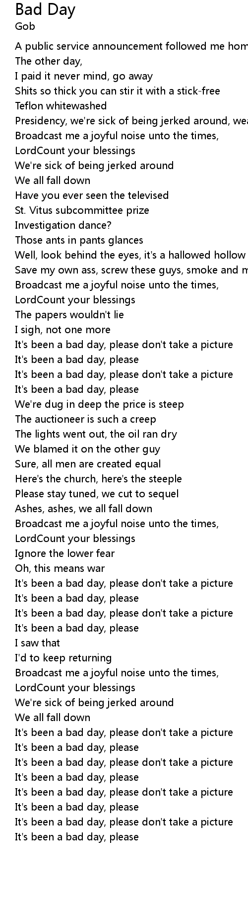 It's been a bad day, please |