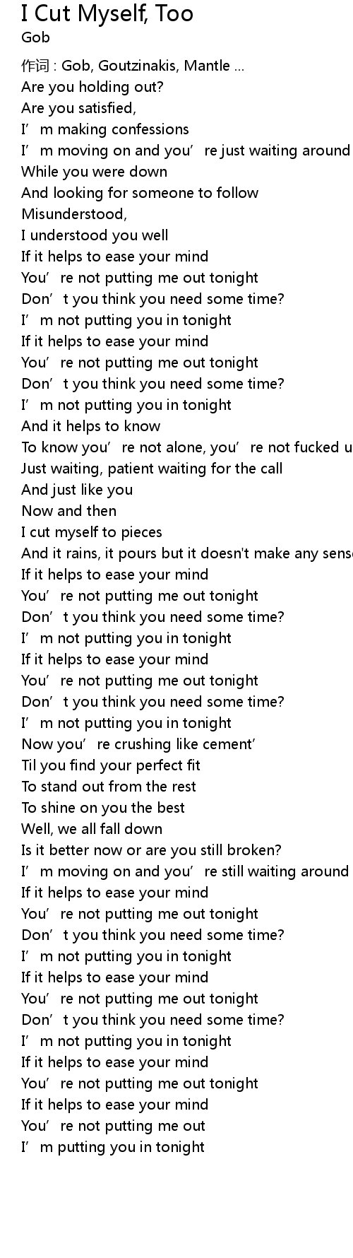 | Song | I Cut Myself, Too |