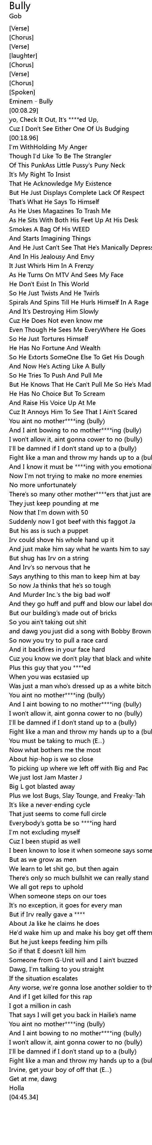 And I aint bowing to no mother****ing (bully) |