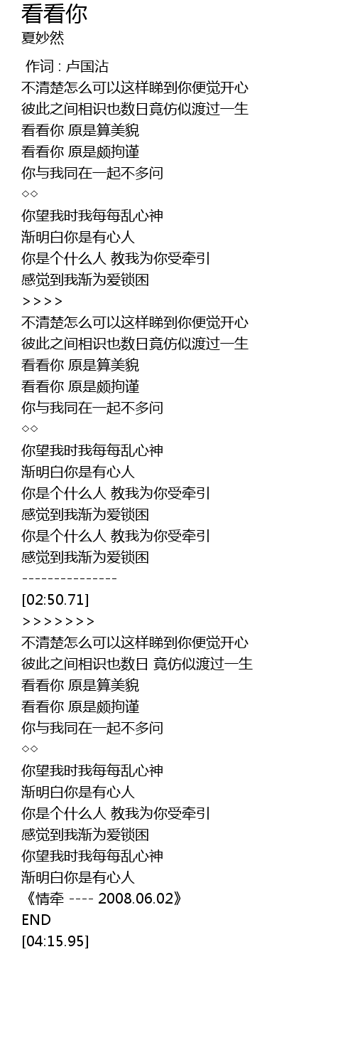 | [01:44.14] | 看看你 原是算美貌 |