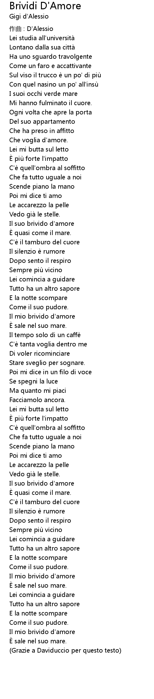 | Song | Brividi D'Amore |