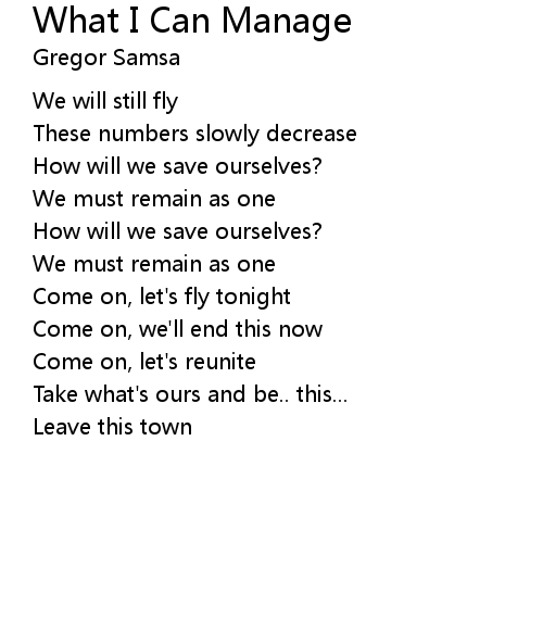 | Song | What I Can Manage |