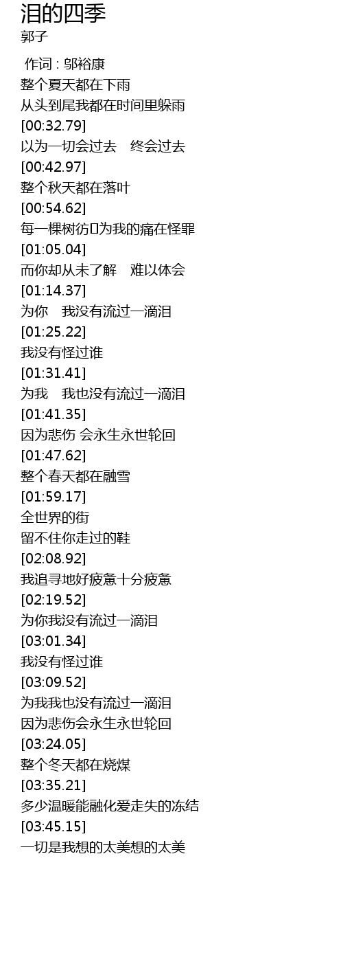 | [00:00.00] | 作词 : 邬裕康 |