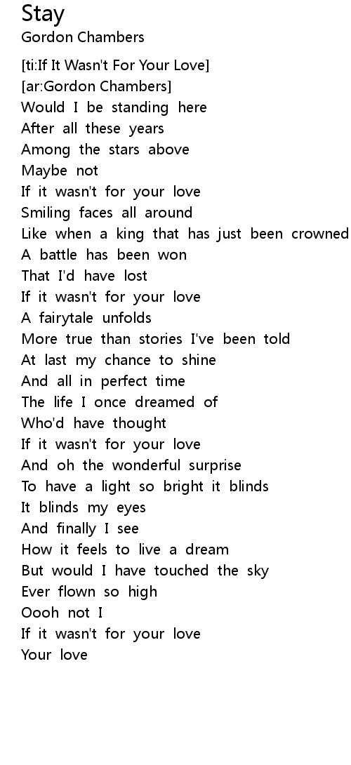 [ti:If It Wasn't For Your Love] |