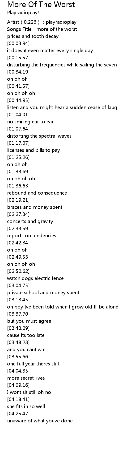 | [00:00.29] | Songs Title: more of the worst |