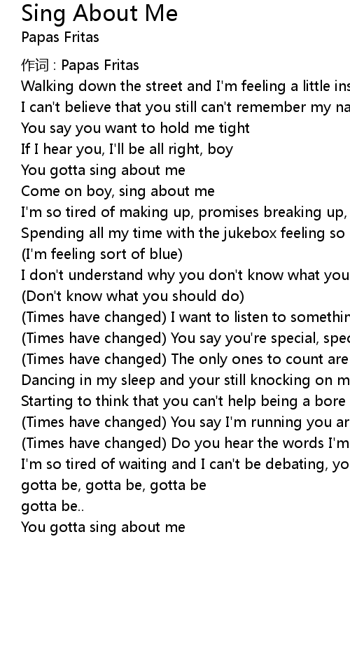 | You gotta sing about me | |