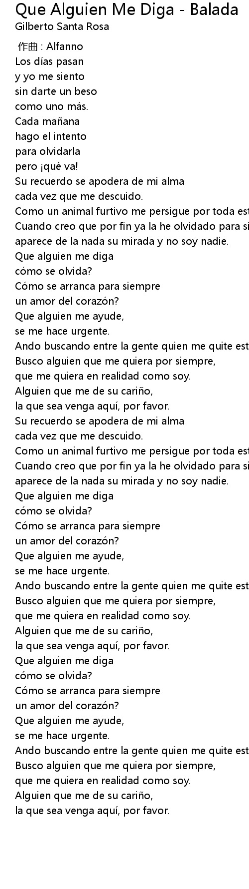 | [01:15.35] | Ando buscando entre la gente quien me quite este dolor. |
