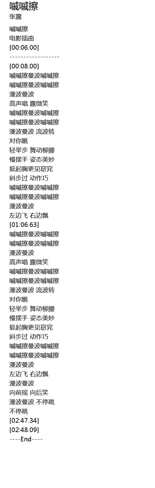 | [00:53.74] | 嘁嘁擦曼波嘁嘁擦 |