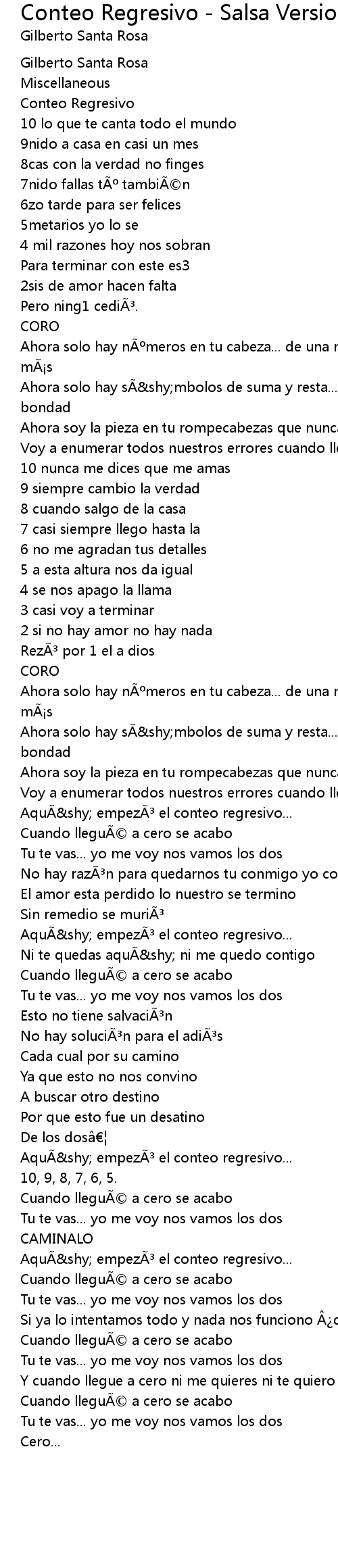 | Song | Conteo Regresivo - Salsa Version |