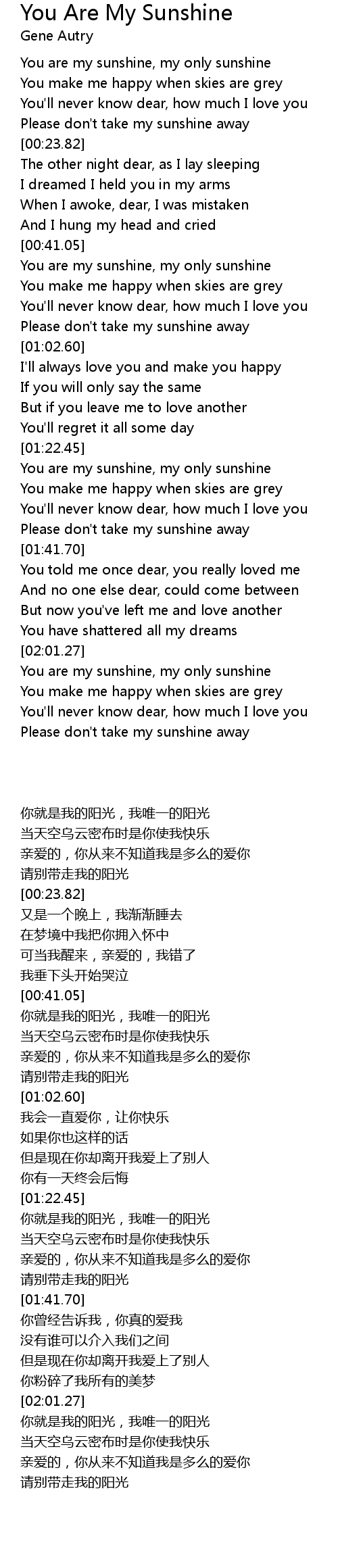You are my sunshine, my only sunshine |