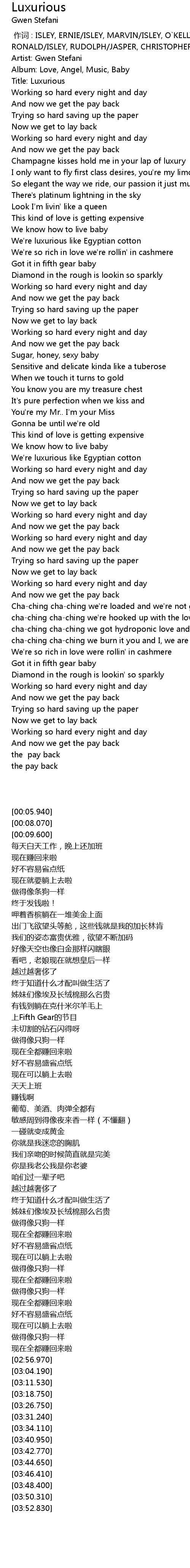 | [03:26.750] | We're so rich in love were rollin' in cashmere |