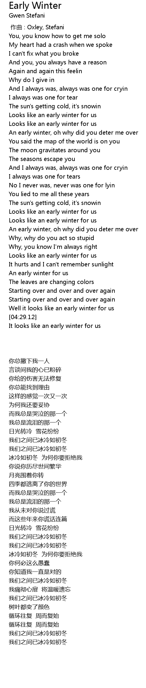 | [02:50.82] | Looks like an early winter for us |