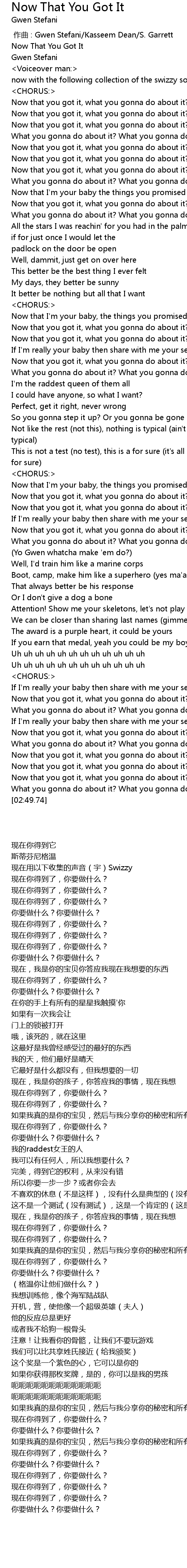 | [01:50.03] | (Yo Gwen whatcha make 'em do?) |