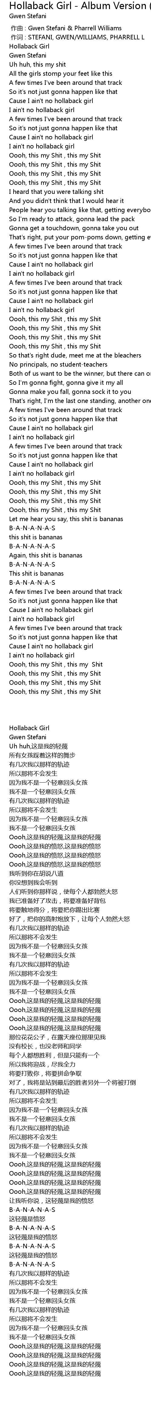 | [00:00.18] | 作词 : STEFANI, GWEN/WILLIAMS, PHARRELL L |