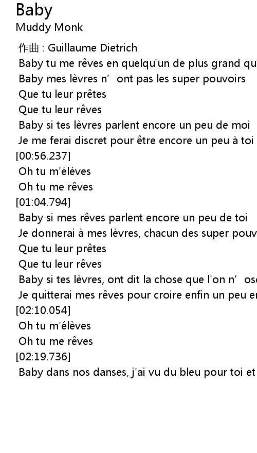 | [01:30.656] | Baby si mes r ves parlent encore un peu de toi |