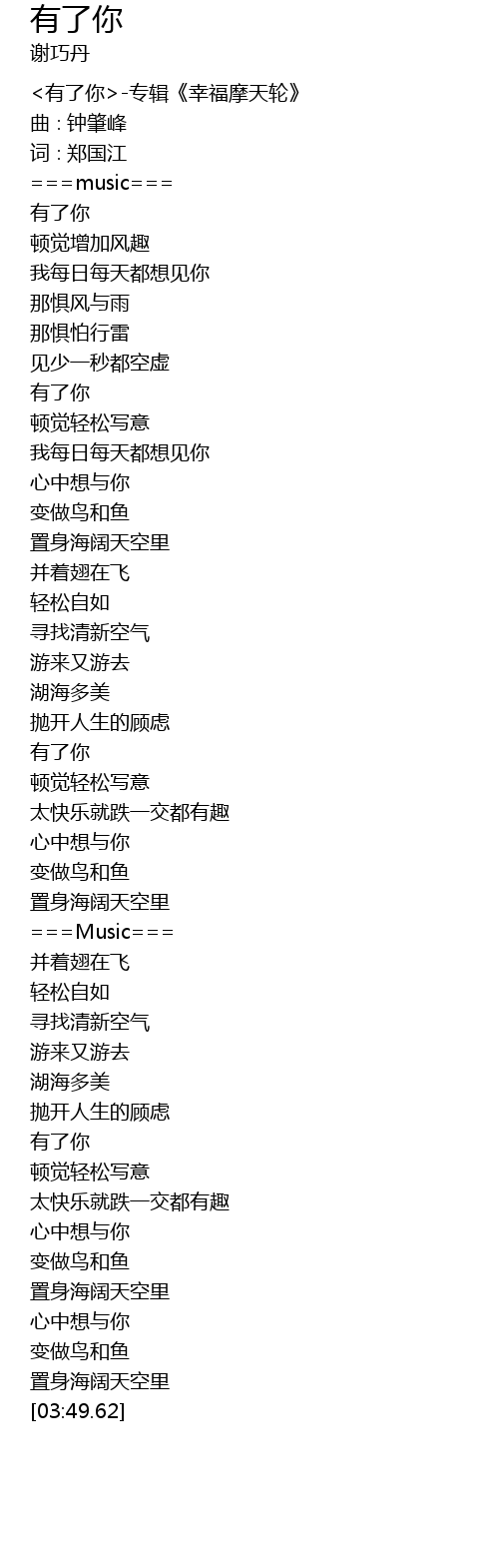 | [00:01.94] | <有了你>-专辑《幸福摩天轮》 |