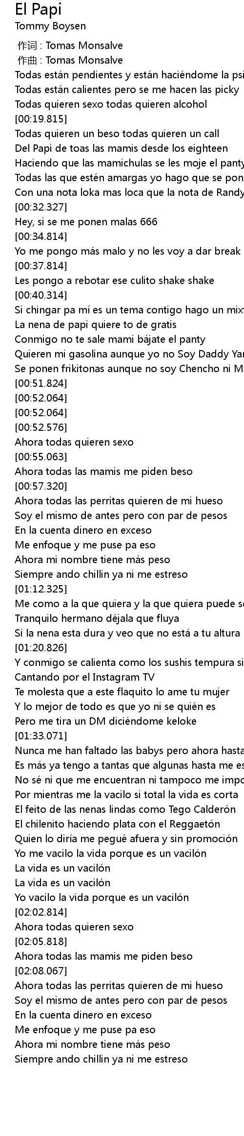 | [00:22.814] | Del Papi de toas las mamis desde los eighteen |