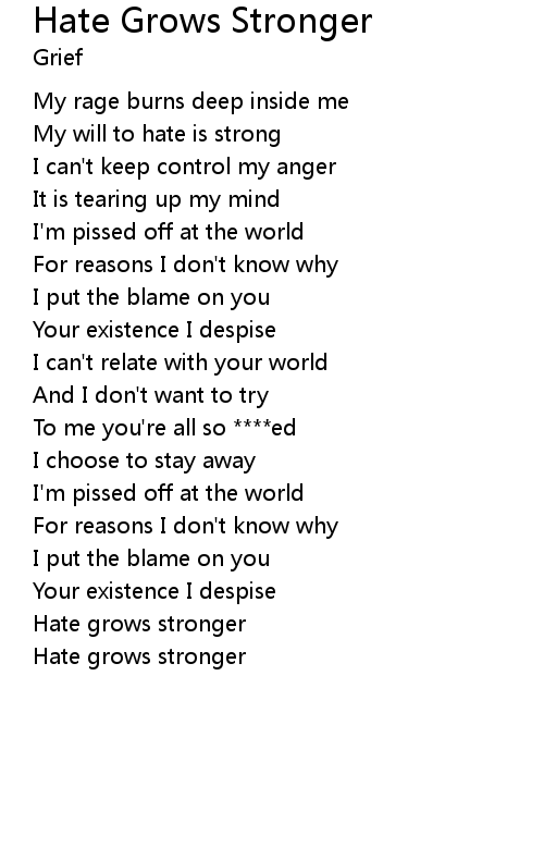 | Song | Hate Grows Stronger |
