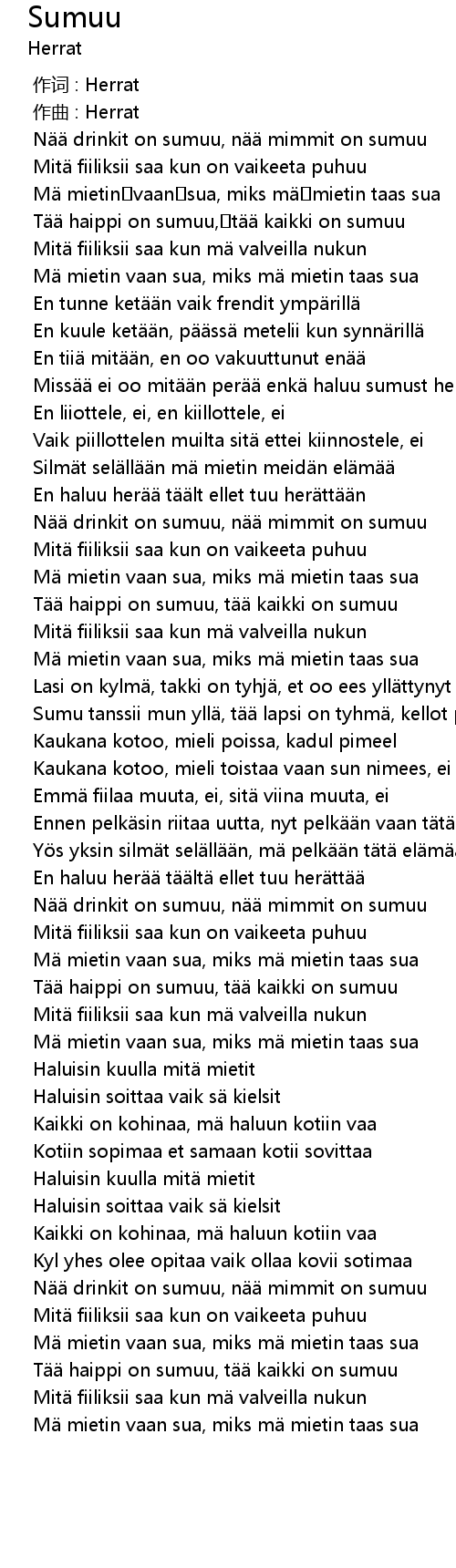 | [02:57.747] | T haippi on sumuu, t kaikki on sumuu |