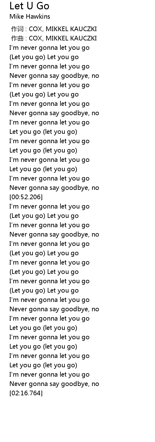 | [00:00.000] | 作词 : COX, MIKKEL KAUCZKI |