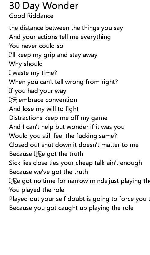 | Song | 30 Day Wonder |
