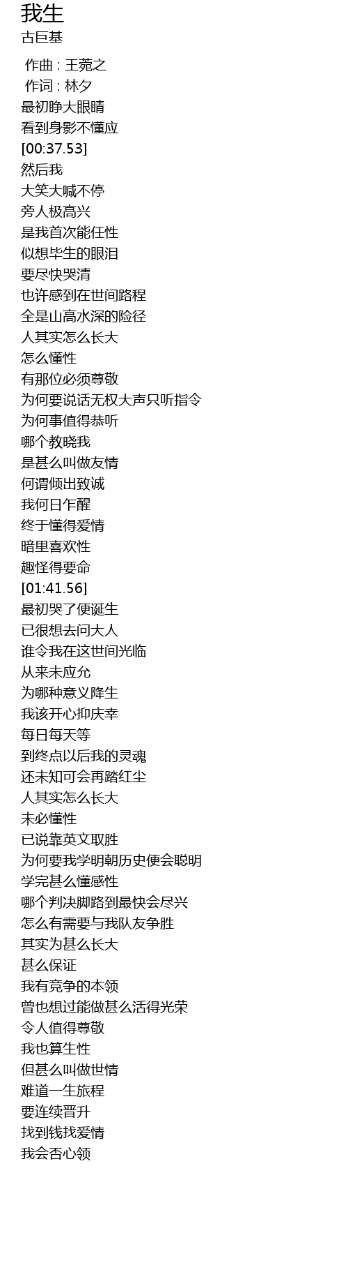 | [01:53.53] | 谁令我在这世间光临 |