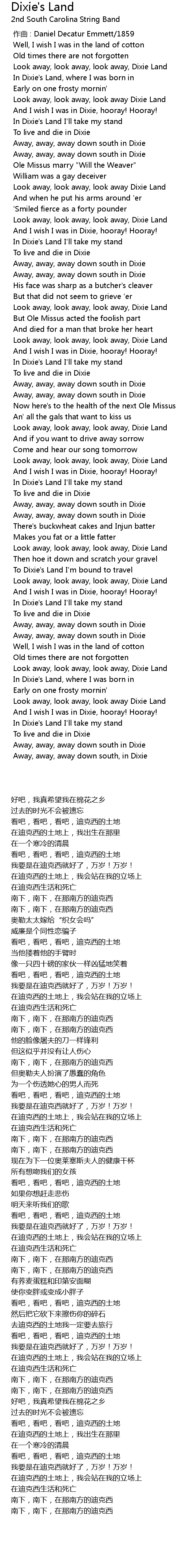 | [00:00.000] | zuo qu : Daniel Decatur Emmett 1859 |