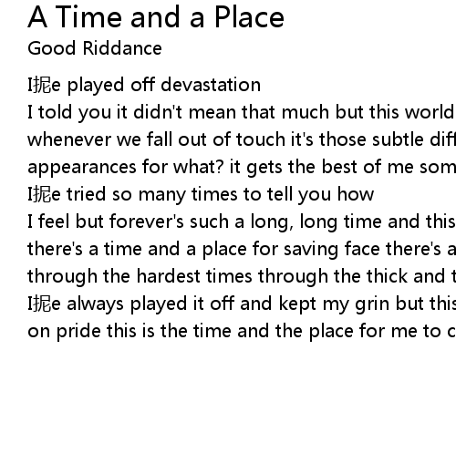 | I feel but forever' s such a long, long time and this apology' s for real now there' s a time and a place for saving face there' s a time when it' s all too much through the hardest times through the thick and thin | |