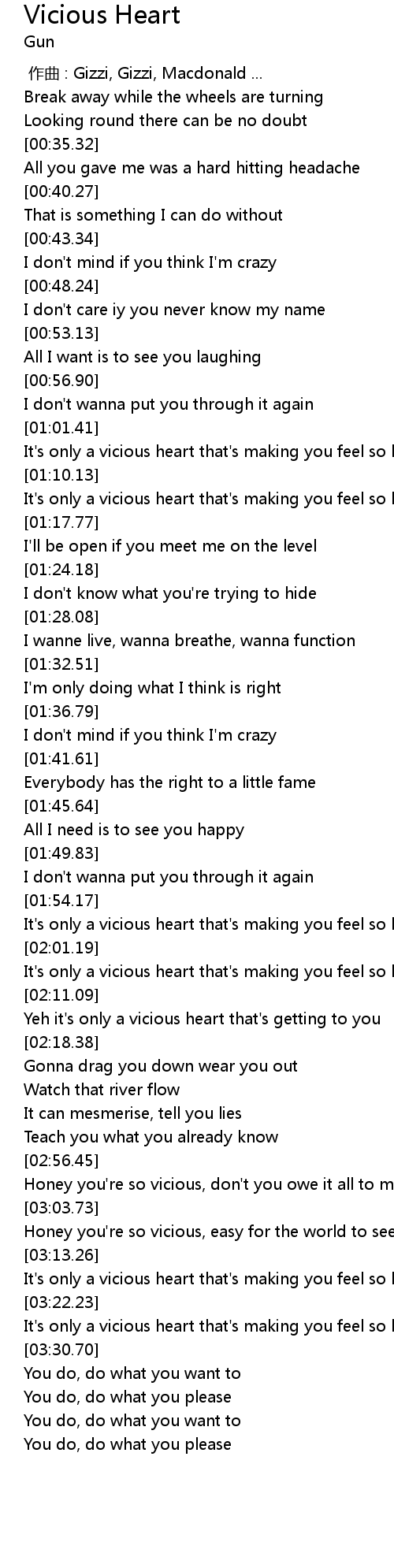 | [02:04.51] | It' s only a vicious heart that' s making you feel so low |