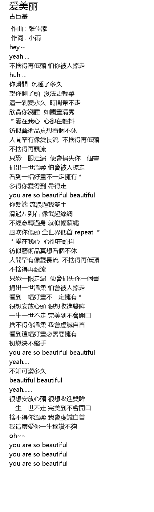 | [01:32.89] | you are so beautiful beautiful |