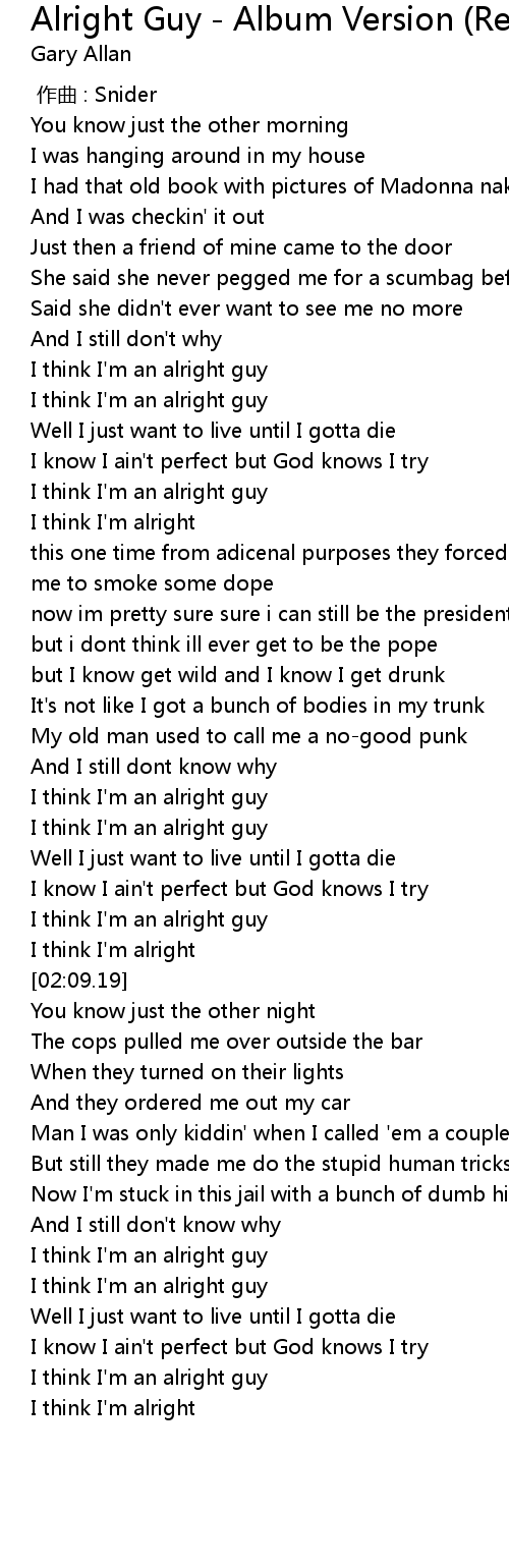 | [00:59.56] | I know I ain't perfect but God knows I try |