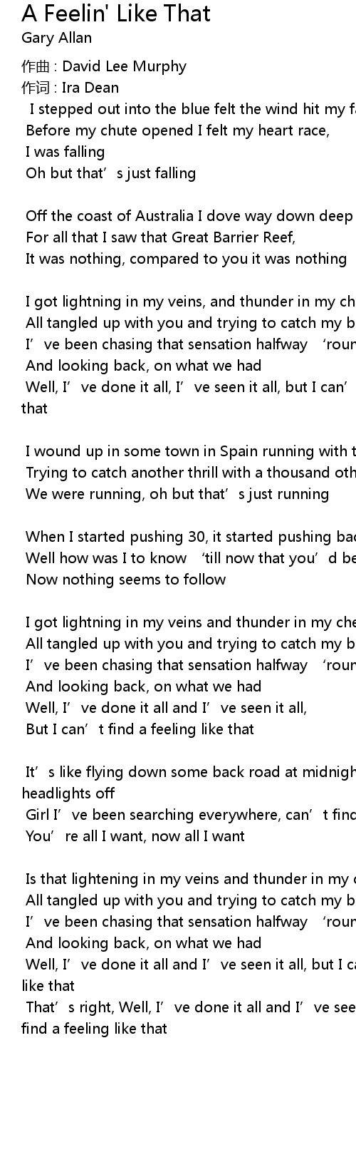 | But I can’t find a feeling like that | |