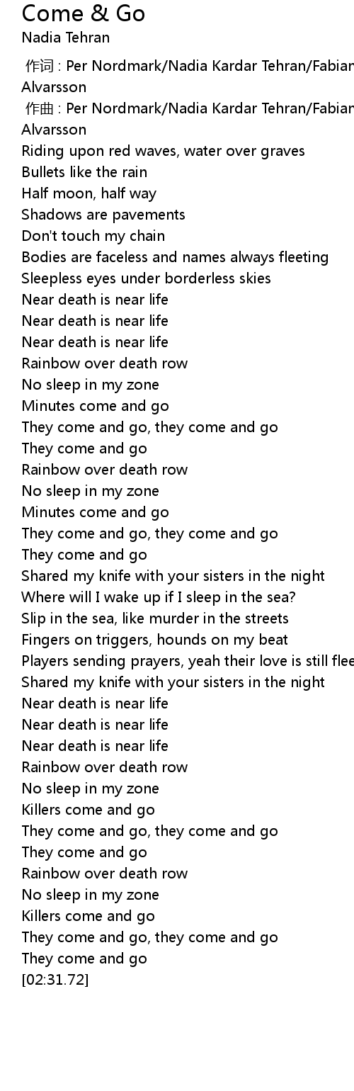 | [00:00.000] | zuò cí : Per Nordmark Nadia Kardar Tehran Fabian Berglund Patrick Alvarsson |