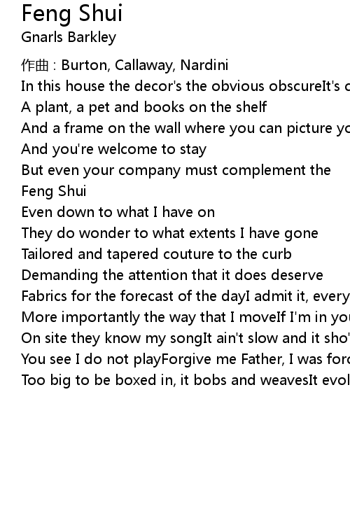 | Too big to be boxed in, it bobs and weavesIt evolves, it solves, it gives and receivesAnd everything I say is calculated appropriatedWritten and arranged in Feng Shui |
