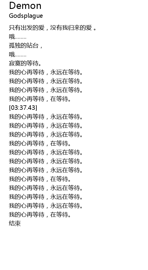 | [03:18.66] | 我的心再等待,永远在等待。 |