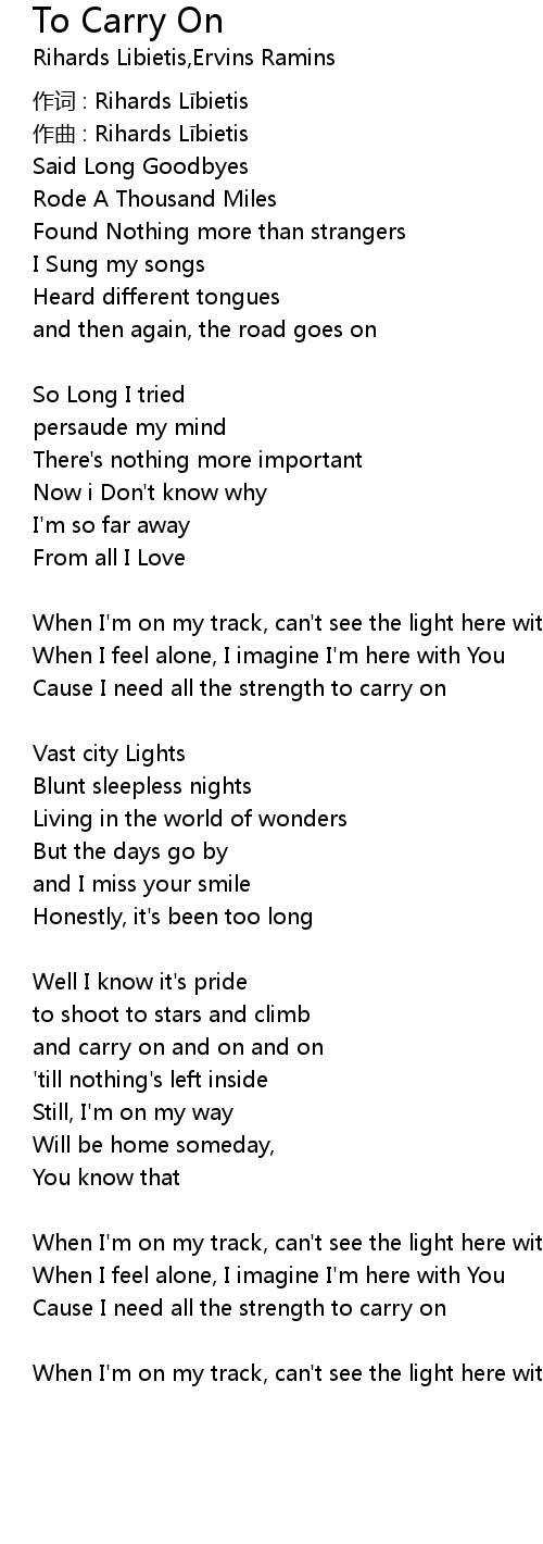 | Song | To Carry On |