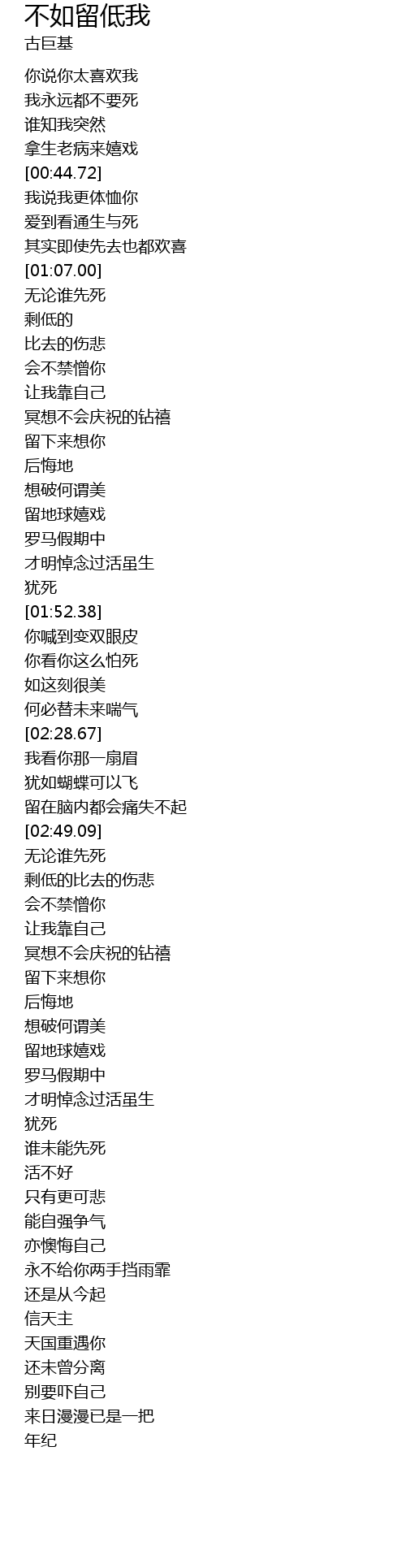 | [01:49.82] | yóu sǐ |