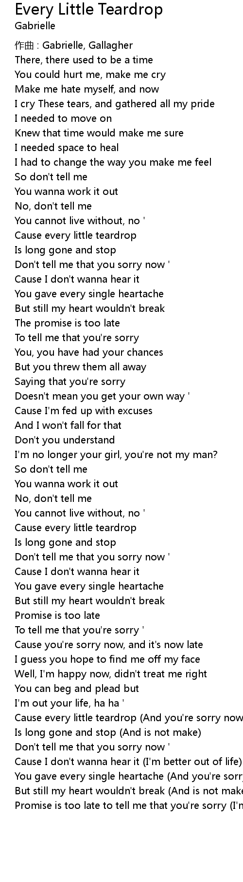 | Promise is too late to tell me that you' re sorry I' m better out of life |