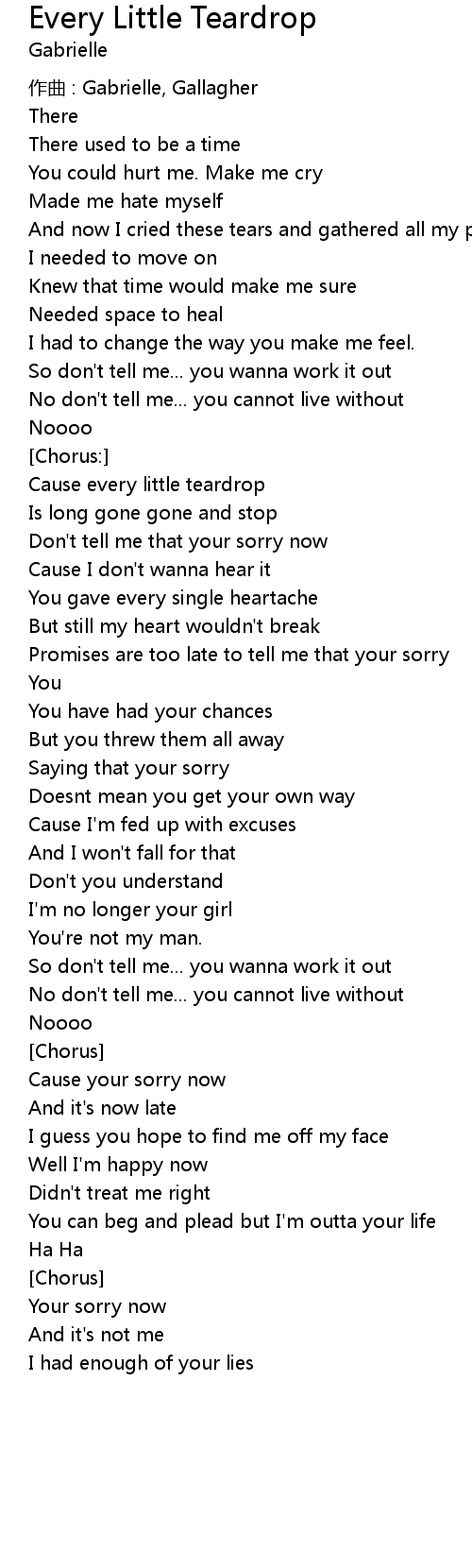 | Cause every little teardrop | |