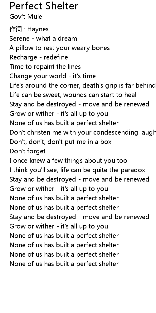 | Song | Perfect Shelter |