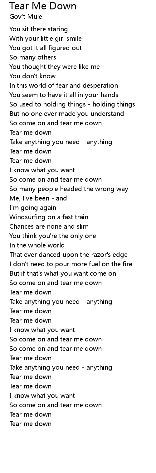 So come on and tear me down |