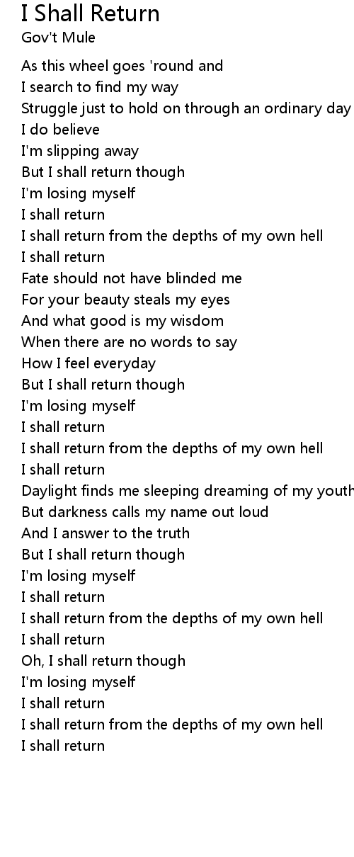 Oh, I shall return though |
