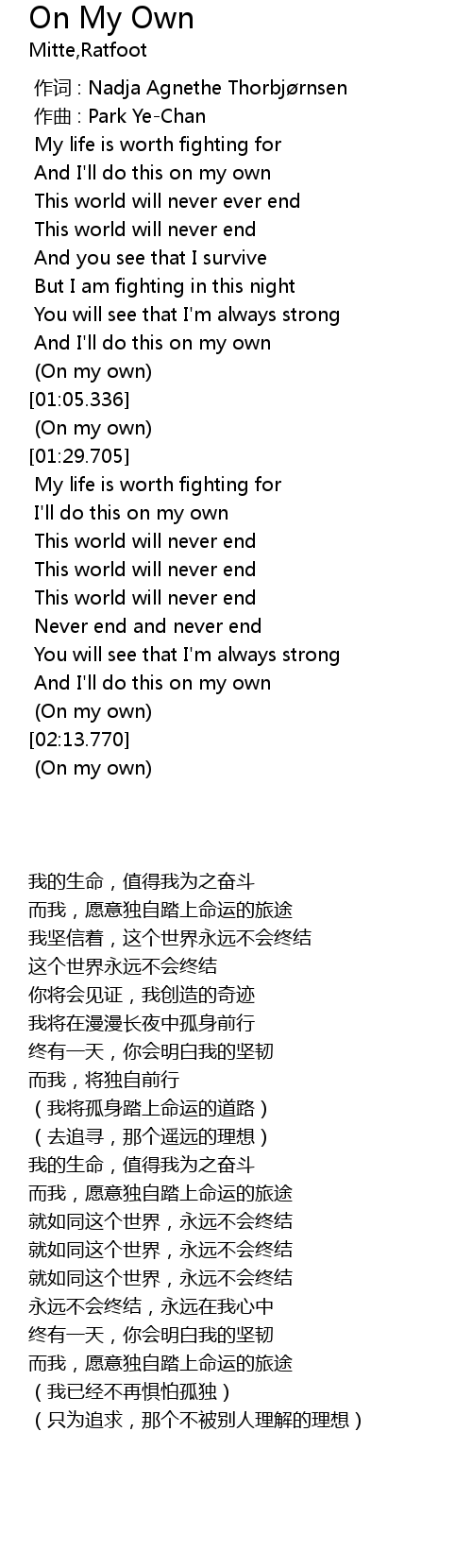 | [02:10.163] | (On my own) |