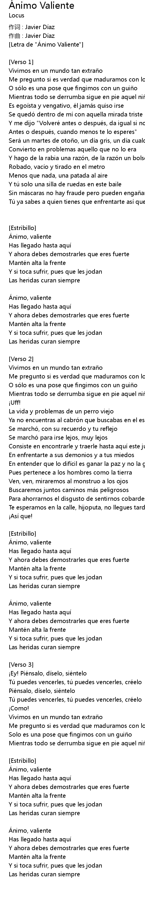 | [Letra de "Ánimo Valiente"] | |