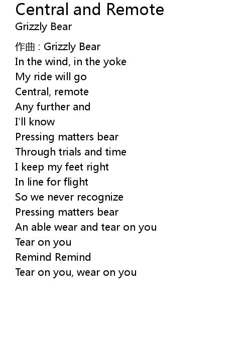 | Song | Central and Remote |