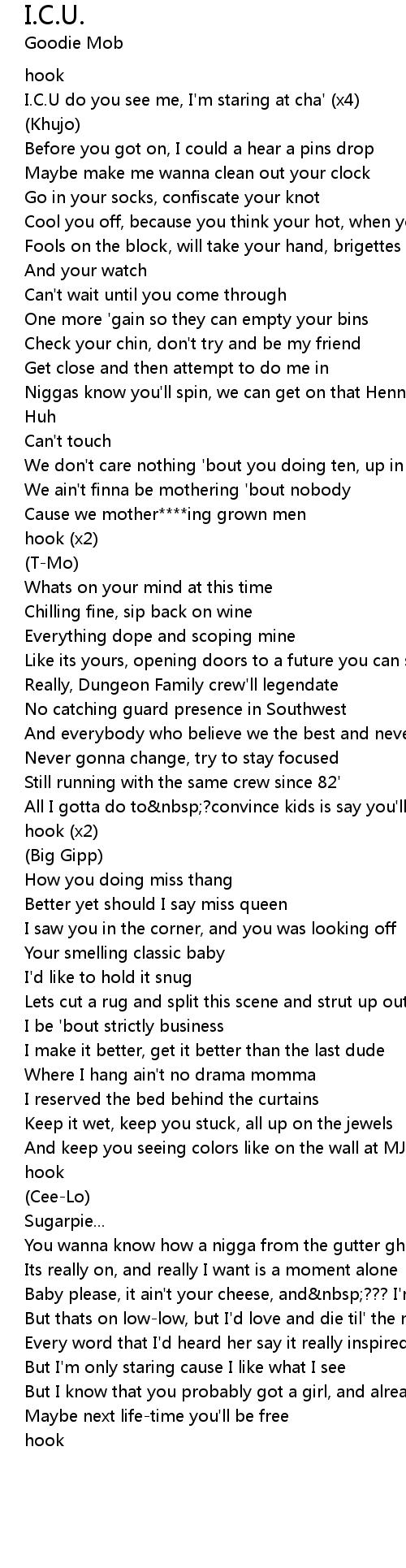 I.C.U do you see me, I'm staring at cha' (x4) |