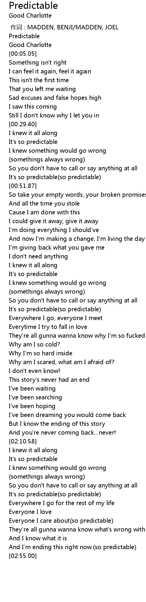 | [00:00.00] | 作词 : MADDEN, BENJI/MADDEN, JOEL |