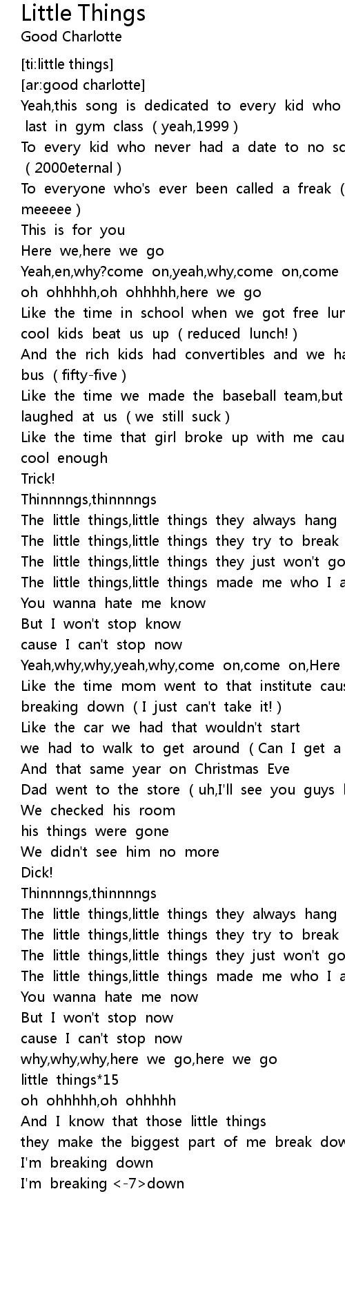 | [01:11.77] | The little things, little things they just won' t go away |