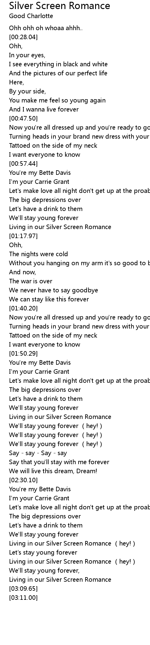 | [02:56.79] | Living in our Silver Screen Romance hey! |