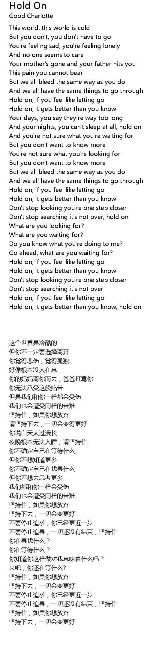 Hold on, it gets better than you know, hold on |